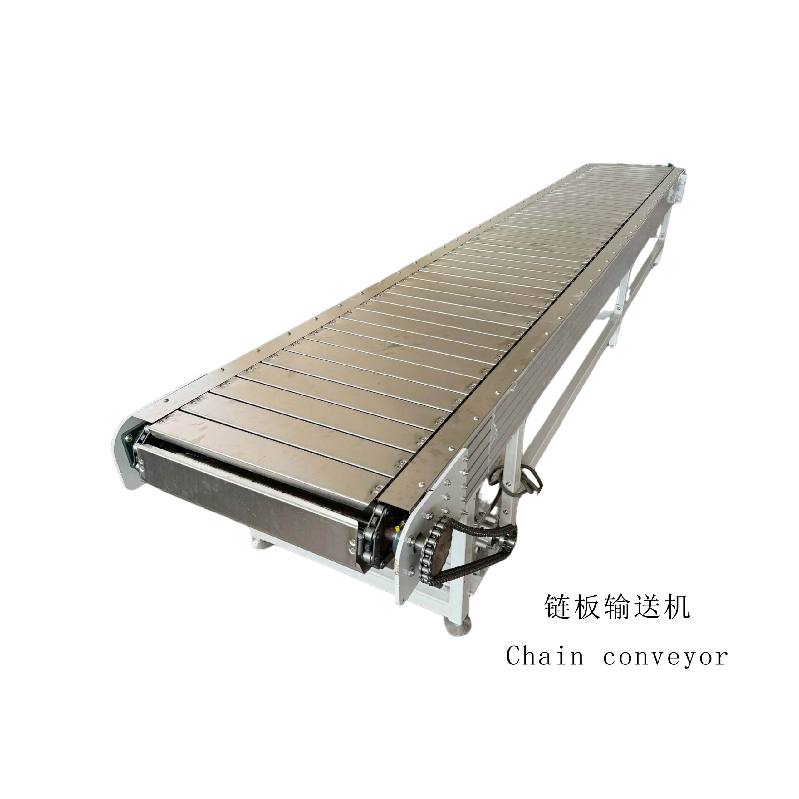 由动力链条驱动,采用金属链板作为承载面,结构坚固。