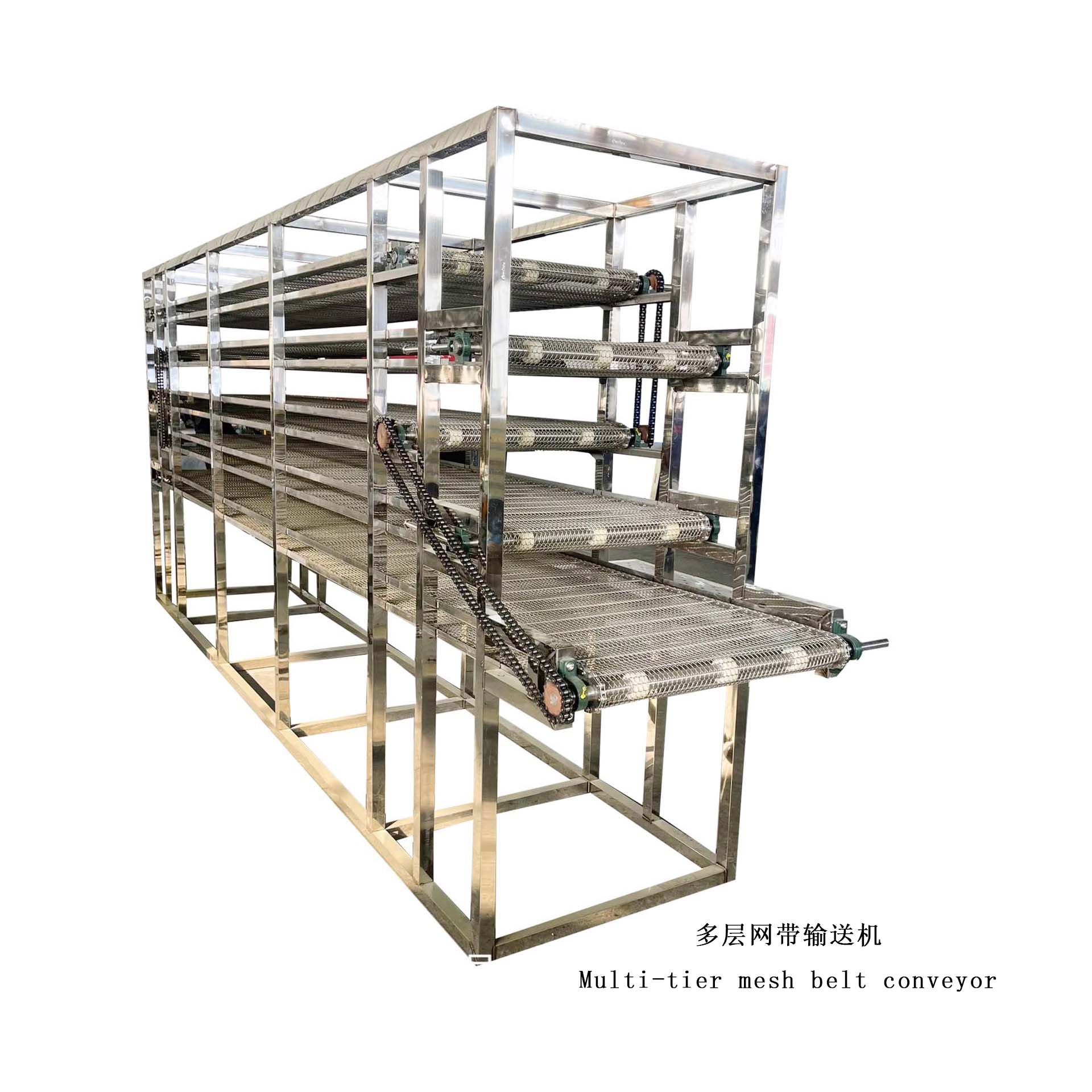 它利用金属网带作为载体,通常也由链条驱动。
